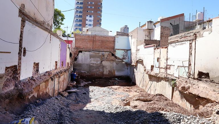 La desesperante escena se dio en pleno centro de Neuquén. Varias familias fueron evacuadas por peligro de derrumbe de sus viviendas.