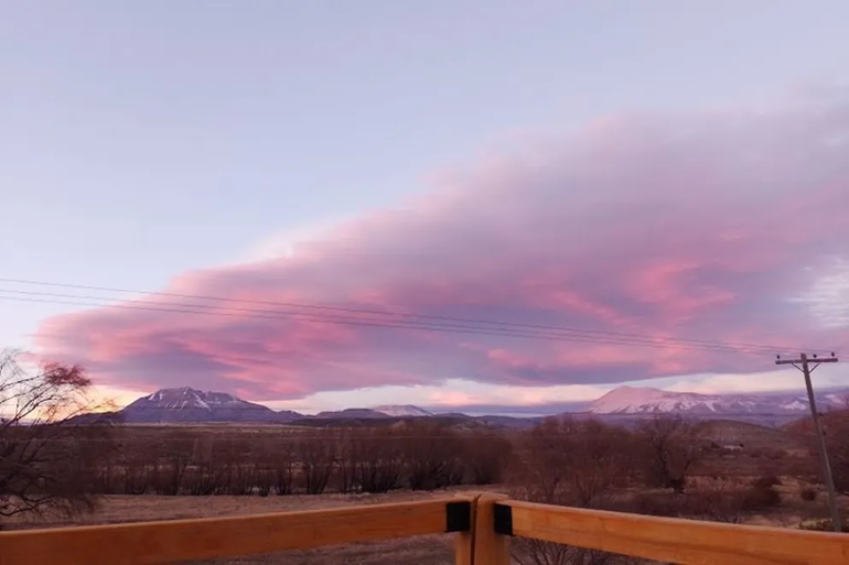 El entorno natural del paraje es un atractivo en sí mismo. Enclavado al pie de la imponente Cordillera del Viento, el complejo ofrece vistas panorámicas al Domuyo y al Tromen. “Estamos en un cuadrado en medio de la Patagonia Norte, realmente es un privilegio el sitio donde nos encontramos”, cuenta Fabrizio. Senderos, caminatas sencillas y paisajes que “te parten el bocho”, como él mismo describe, son parte del encanto.