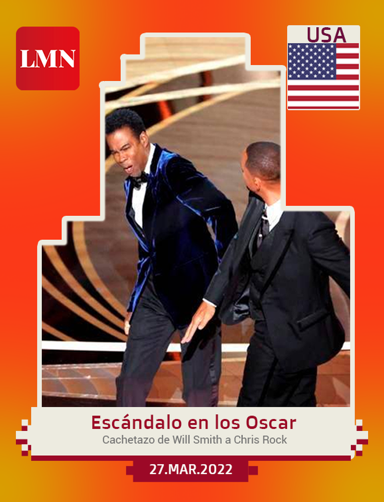 Aunque la gala de entrega de los premios de la Academia suele ser uno de los eventos más esperados de Hollywood, este año estuvo en el foco mundial a partir de un hecho escandaloso. El actor Will Smith, uno de los nominados a la estatuilla y finalmente ganador del premio, se subió al escenario y le pegó una bofetada al presentador del show, Chris Rock, luego de que éste hiciera una broma de mal gusto sobre la calvicie de su esposa, que padece alopecia. Durante el evento se disculpó con los otros nominados y dos días después de su agresión, renunció a la Academia, que decidió vetarlo por diez años y no permitir su participación en otras actividades de la organización.
