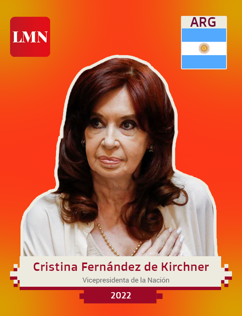 La vicepresidenta de la Nación y ex presidenta de la Argentina ya es una figura conocida desde hace años. Sin embargo, este año cobró especial protagonismo por dos hechos trascendentes. El 1° de septiembre de este año, cuando ingresaba a su departamento en el barrio de Recoleta, un hombre apuntó un arma y gatilló dos veces contra Cristina, aunque los disparos no se efectuaron. La noticia dio la vuelta al mundo y miles de personas salieron a las calles al día siguiente para repudiar el hecho. El 6 de diciembre, la vicepresidenta fue condenada a seis años de prisión e inhabilitación para ejercer cargos públicos en una causa que investigaba el direccionamiento de la obra pública de Santa Cruz para beneficiar al empresario Lázaro Báez.