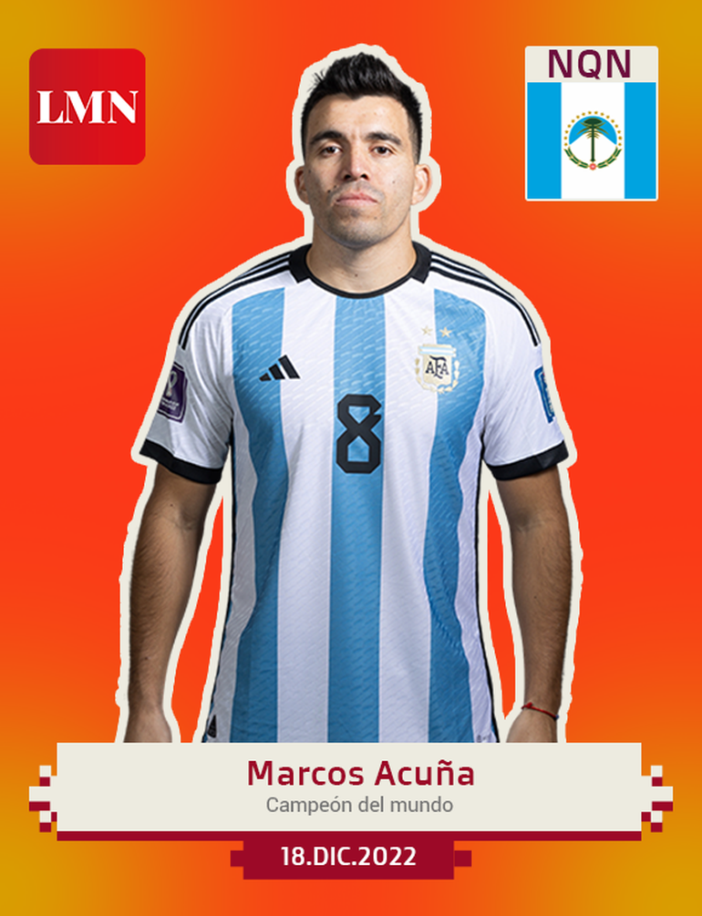 El jugador zapalino se convirtió en el futbolista más consagrado de la historia deportiva de Neuquén luego de obtener el título en el mundial de Qatar 2022. Su mamá Sara y el resto de su familia acompañaron cada paso del "Huevo" desde su casa de Zapala, donde toda la comunidad espera recibirlo con una verdadera fiesta. Tras su inicios en Ferro, Acuña jugó en Racing y se mudó luego a Portugal, para jugar en el Sporting de Lisboa. Ahora, forma parte del Sevilla, en España. En la Scaloneta, se destacó con una activa participación y fue titular en casi todos los partidos.