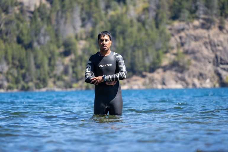 Este deportista de 38 años, que vive una parte del año en Neuquén Capital y otra en San Martín de los Andes, desde los 30 nada en aguas abiertas, tanto en ríos, mares y lagos, además de hacer running y ciclismo.
