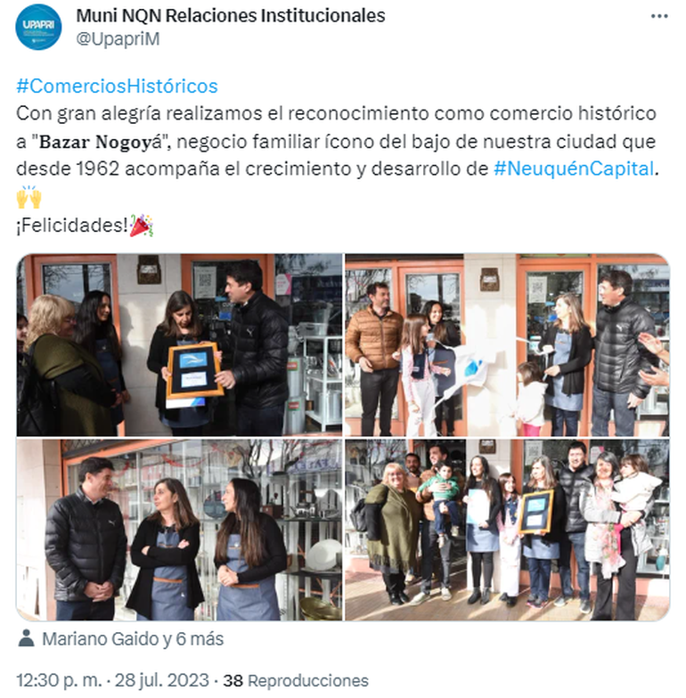 Señaló que es el negocio N°53 distinguido por el municipio, y comentó que “es una incógnita cuántos quedan homenajear porque a medida que vamos avanzando hay comercios que se acercan”.