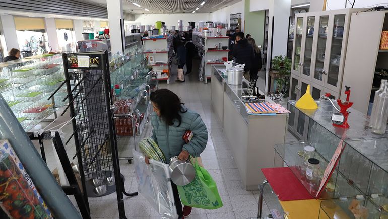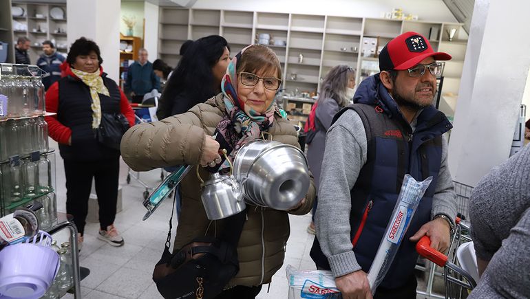 No hay discriminación a la hora de comprar, los visitantes se llevan de todo. Cubiertos, platos, ollas, sartenes, budineras, termos. Las góndolas van quedando vacías.