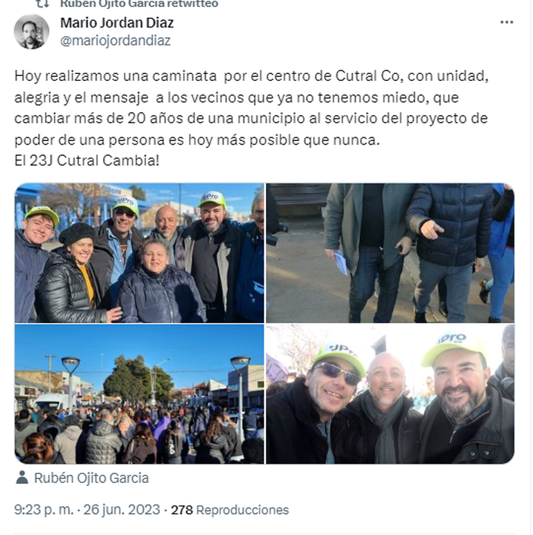 “Es un logro de los pueblos de Cutral Co y Plaza Huincul. No es de Rioseco ni va a ser nuestros cuando seamos gobierno. Es del pueblo, y como tal lo vamos a respetar”, sostuvo el postulante del partido del gobernador electo Rolando Figueroa.
