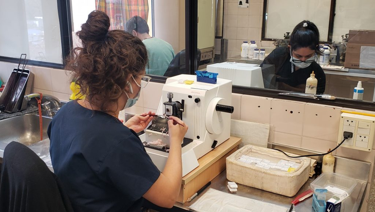 Los comienzos de las cirugías de Mohs en el HPN fueron a fines de 2018 y para poder hacerlo médicos patólogos e histotécnicos se capacitaron en Buenos Aires en el Instituto Alexander Fleming y en el Instituto de Oncología Roffo acerca de la técnica Mohs.
