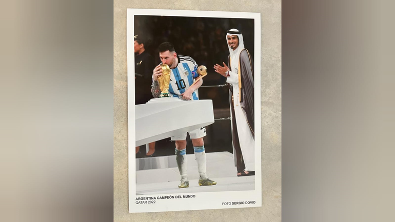 Con motivo de la celebración, también obsequió dos fotos que hizo en el último Mundial de Fútbol, como un afortunado y fotógrado amateur que tuvo la inmensa alegría de haber sido testigo de 12 mundiales y 16 juegos olímpicos, y tener la dicha de haber recibo dos remeras del número uno (Lionel Messi).