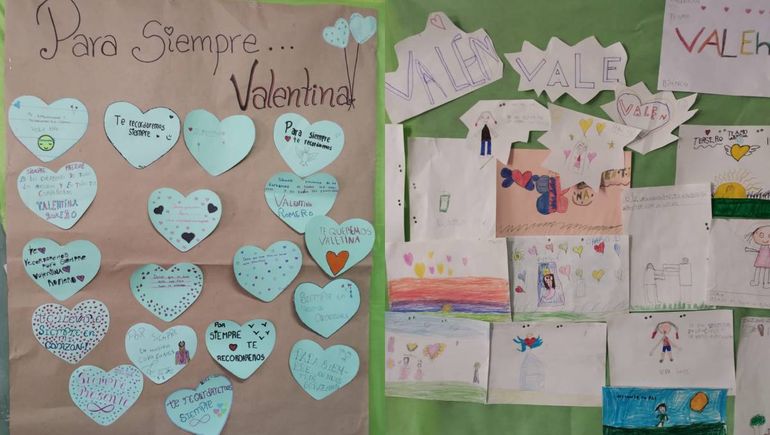 Por supuesto que la pena va a seguir, pero fue un comienzo con mucho dolor que hacia el final se transformó en alegría para despedirla con un montón de cartas, tarjetas y dibujos que regalarán a Valentina. Estaban viendo si pedían autorización a sus familias para ir con la escuela hasta el cementerio del barrio El Progreso, donde descansan sus restos en una tumba; y o cada uno iba por su cuenta, acompañado por su papá y su mamá.