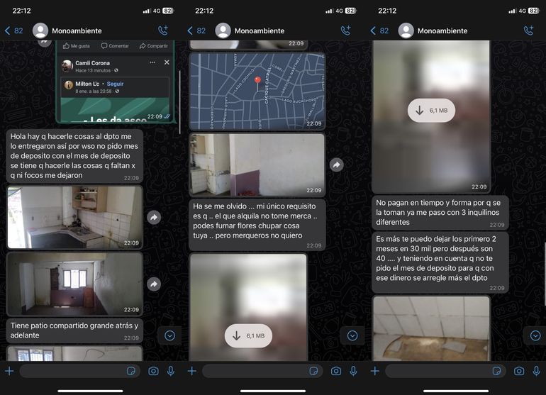 Todo comenzó cuando la usuaria @sofi_avilez escribió "Creo que encontré el monoambiente de mis sueños", junto a una serie de capturas de pantallas de un intercambio en Whatsapp en el que el propietario de una deteriorada vivienda habla de las condiciones para acceder a la misma.