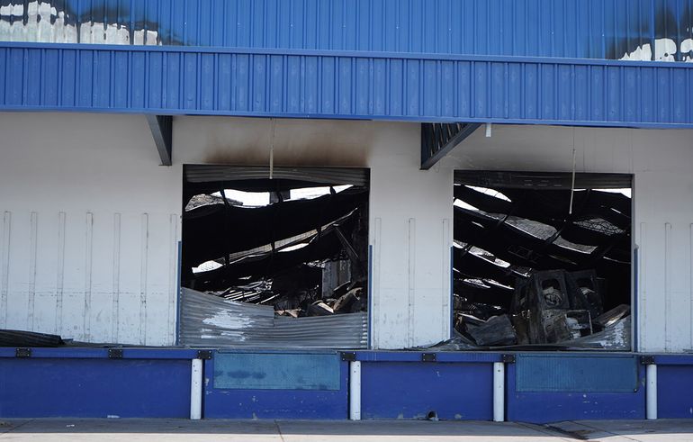 Aunque prohíben el acceso, desde afuera se puede ver todo el interior quemado y cómo el techo del depósito fue alcanzado por el fuego, hundiéndose por completo hacia adentro.