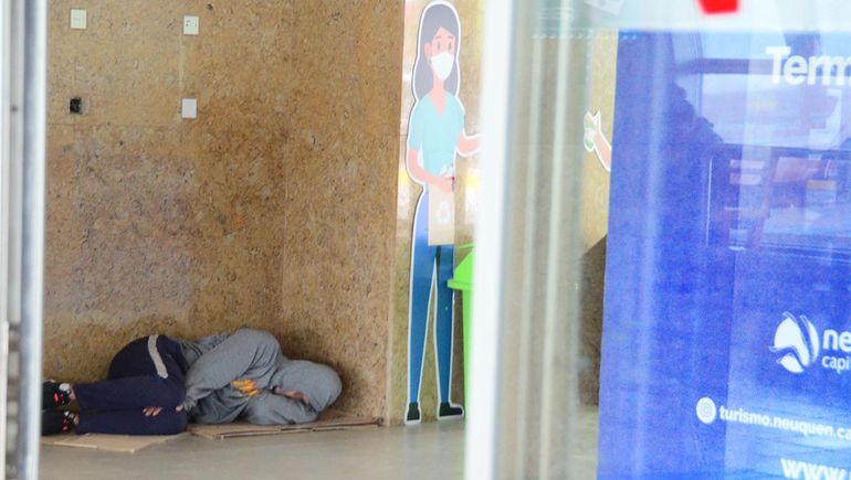 Un cielo encapotado abarca el horizonte de la ciudad y niega las fechas de los calendarios. En plena mañana de primavera, el frío reina otra vez y se cuela por las puertas automáticas de la Estación Terminal de Ómnibus de Neuquén (ETON), que se abren y cierran sin cesar ante el ritmo fluido de pasajeros. En cada apertura, desabrigan un poco más a las personas sin techo: unos 14 hombres jóvenes que convirtieron las dársenas de colectivos en su único refugio.