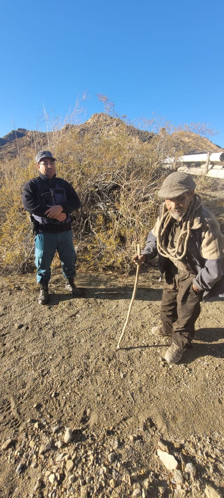 Méndez contó que tanto él como sus compañeros desde el destacamento policial cumplen un valioso rol social y que es fundamental muchas veces para asistir a personas que están en lugares casi inaccesibles. “Estas visitas se realizan con todos los puesteros de la zona debido a las bajas temperaturas. Verificando el estado de salud, y si tienen provisiones para pasar el invierno cruel que se viene. Se cubre todo el sector de la costa del río Neuquén”, explicó Méndez. Agregó que “en el caso de don Peto lo visitamos en la tarde de este lunes por pedido del juzgado de Paz de Taquimilán. Igualmente, mis otros compañeros habían estado con él hace tres días atrás”.