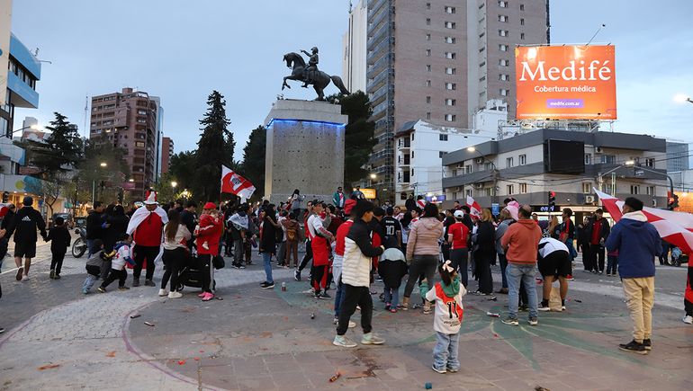 Ni bien finalizó el partido en la cancha de Boca, donde River se impuso por 1 a 0 en un final de infarto, un nutrido grupo de simpatizantes se reunió frente al monumento San Martín.