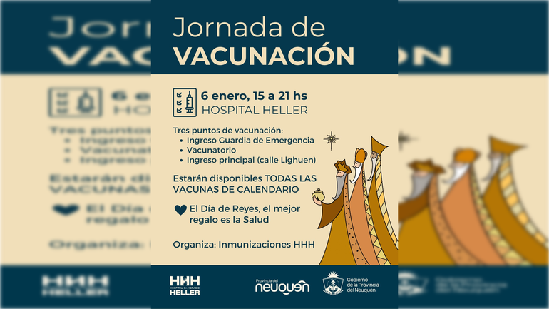 Este martes 6, en el marco del día de Reyes, el Hospital Heller organizó una jornada especial de vacunación abierta a toda la comunidad de Neuquén. La misma se realizará con horario extendido de 15 a 21 horas, con el objetivo de facilitar el acceso a la inmunización.