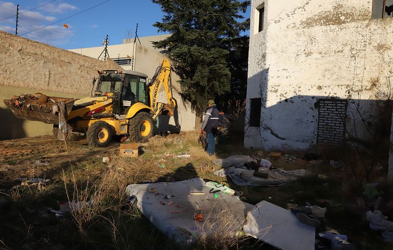 Cuando la policía desalojó a los usurpadores, Limpieza Urbana logró ingresar a limpiar y según describió el funcionario a cargo del área sacaron una batea de 20 metros cúbicos y dos camiones chicos completos de residuos.