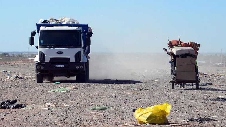 Sin embargo, a solo metros de transitar el inicio del tramo, la realidad cambia por completa. Si uno toma el primer desvío a mano derecha se encontrará con el basurero más grande que posee la ciudad. Cuando se va ingresando por el camino de tierra que bordea el Complejo Ambiental de Neuquén –área donde se envían y reciclan los residuos- el panorama comienza a ser desolador y triste. Montañas de basura de todo tipo van creciendo en ese trayecto hasta llegar al corazón del basural.
