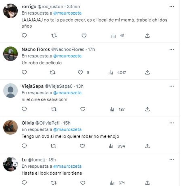 Llama tanto la atención que robe copias truchas, que algunos usuarios de las redes se burlaron del ladrón y pensaron que estaría drogado. "Qué bajo cayó L-Gante"..."la decepción cuando se rescató y vio lo que se había llevado. Moraleja, no afanen merkeados"..."cuando no te da para Netflix"..."robarse una peli en DVD es como robarse una jirafa: no tenés dónde ponerla"..."qué mala suerte si alguna era de (Adrián) Suar y encima lo condenan"..."el cómplice lo está esperando en un De Lorean"... y así son cientos.