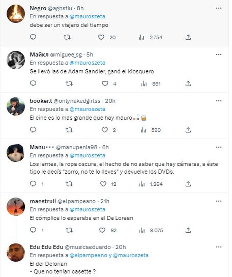 Muy pocos son los que condenan el hecho de robo, tal vez porque resulta insólito y extemporáneo que saque DVDs en lugar de manotear alguna bebida alcohólica exhibida en las heladeras del comercio. Incluso hubo gente que "perdonó" al sospechoso por tratarse de copias piratas. En esa línea, no faltó el usuario de las frases como "ladrón que roba a ladrón tiene 100 años de perdón".