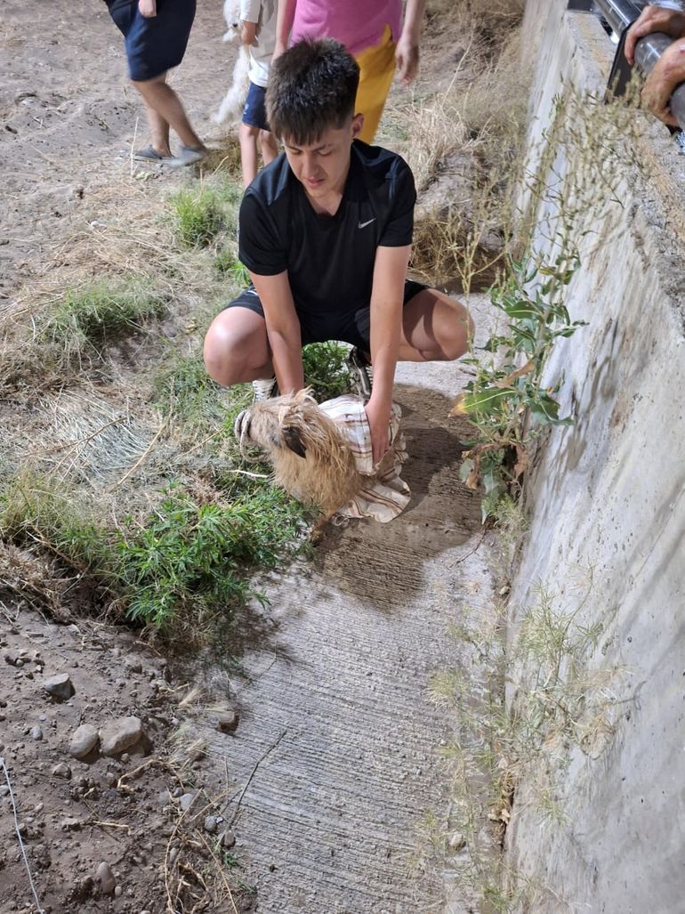 El rescate tuvo lugar en la zona de la vieja usina, cuando un vecino del sector vio al perro caer en el agua helada que se desplazaba de manera fuerte, dado a la fuerza de la corriente, producto del deshielo en alta montaña.