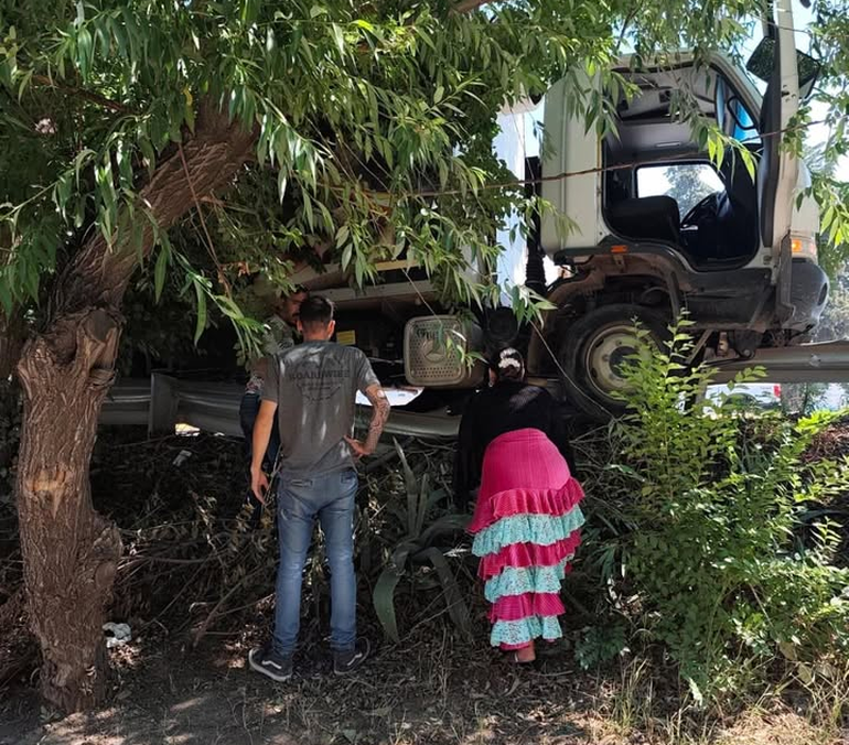 "Quedó prácticamente bajo el camión", indicó Encina, quien destacó que, afortunadamente, el rodado mayor fue contenido por el guardarrail, los árboles y un poste, lo que permitió que se detuviera y “no se produjera un mal mayor”.