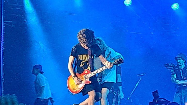 El joven artista neuquino realizó una improvisación de blues. "Fue algo magnífico, nunca me imaginé que iba a estar tocando la guitarra con mi banda favorita y frente a 250 mil personas, no pude dormir", confesó.