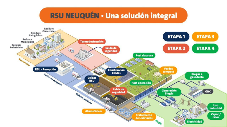 La planta recibirá, mensualmente, cientos de miles de toneladas de residuos y entre las novedades se cuenta una planta de biogás en la que los residuos tratados se transformarán en energía, generando GNC para vehículos, electricidad, así como vapor y calor para uso industrial.