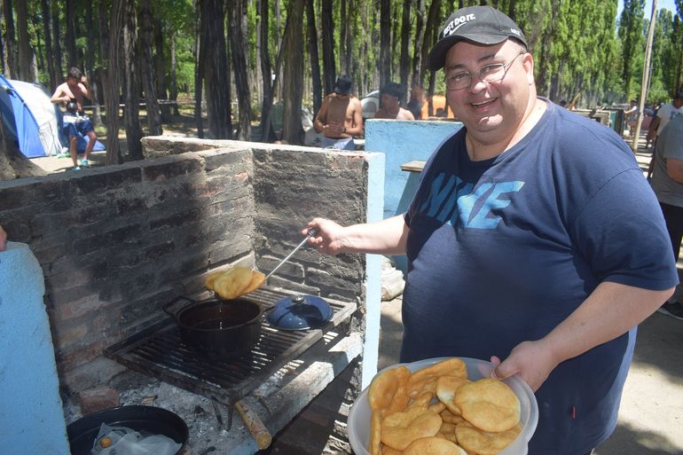 “Estoy preparando unas buenas tortas para compartir con la familia y los amigos con los que estamos disfrutando este lugar con amigos de Cutral Co. Es la primera vez que vengo a este lugar y realmente es muy lindo. Yo siempre vengo a Mariano Moreno, pero visitaba el río o el balneario municipal”, contó Claudio Caro, vecino de Zapala.