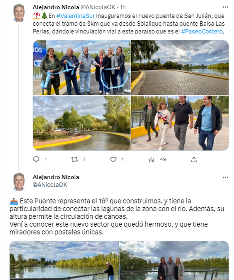 La Municipalidad de Neuquén finalizó la obra de construcción del puente ubicado en el balneario Solalique que permite conectar todo el Paseo Costero hacia el balneario Valentina Brun de Duclot, en Valentina Sur, mediante una calle de doble circulación.