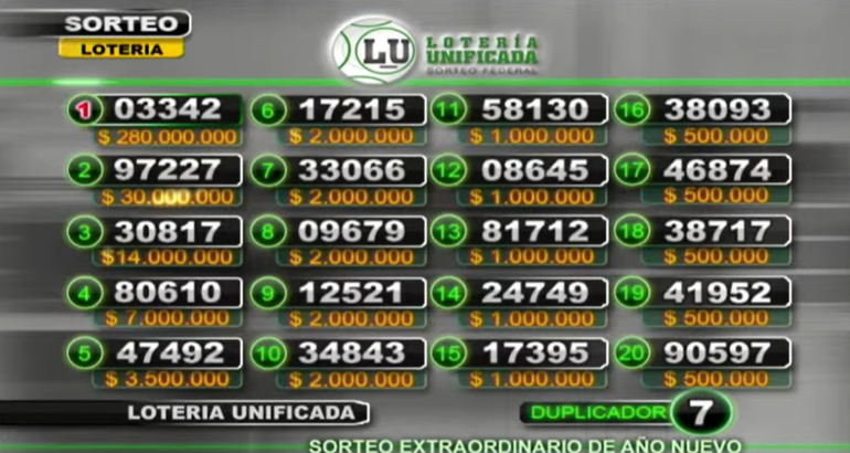 El primer premio del Sorteo de Año Nuevo de La Lotería Unificada para el 03342