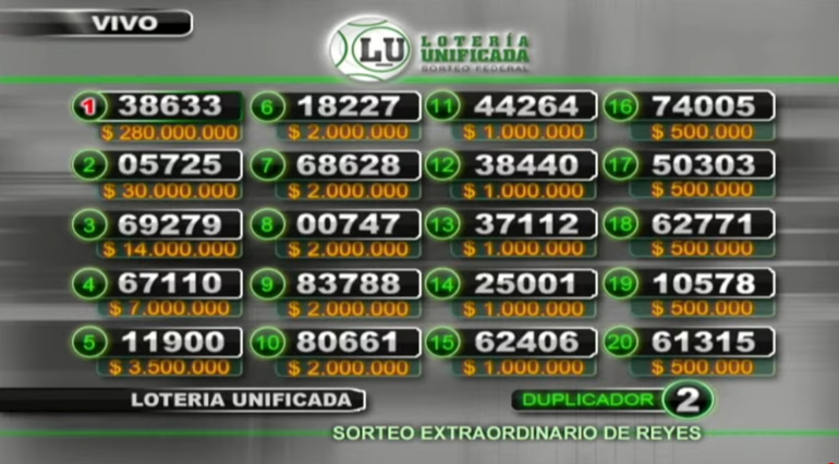 El primer premio del Sorteo de Reyes de La Lotería Unificada para el 38633
