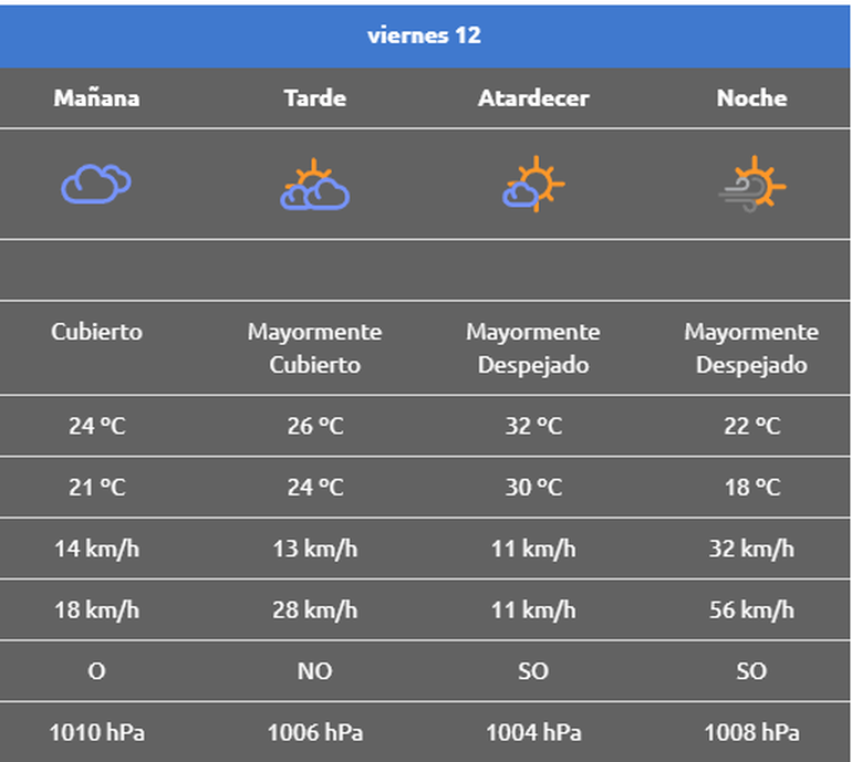 El pronóstico para este viernes: ¿vuelve el viento?