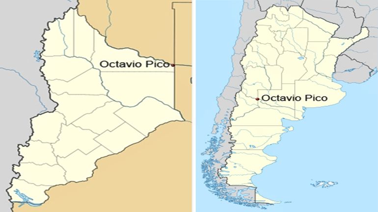 Octavio Pico tiene menos de 300 habitantes que viven en 76 casas. Está en la cuádruple frontera provincial de Neuquén, Río Negro, La Pampa y Mendoza.