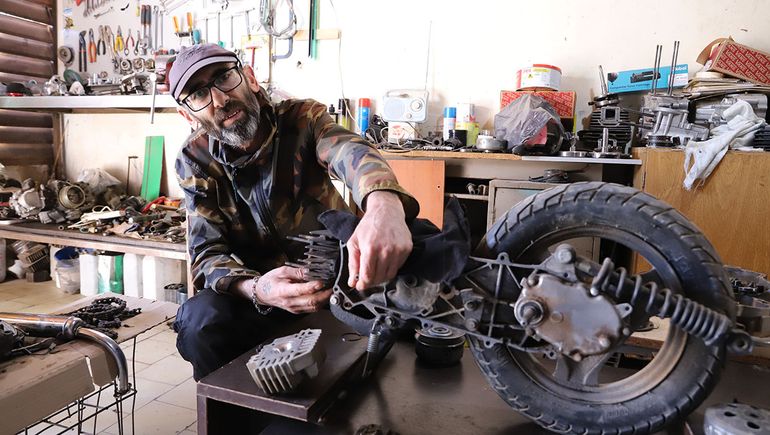 El taller de Santiago es pequeño, anexo a su casa. Allí trabaja solo, entre herramientas, motores y piezas que todavía conservan el brillo de fábrica. Su publicidad no está en las redes ni en carteles: es el boca en boca. “Siempre fue así: le arreglo la moto a uno y me trae a seis. Esa es mi propaganda”, dijo.