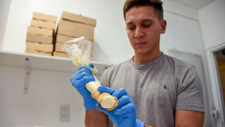 Mientras en Buenos Aires viene pegando fuerte, en Neuquén es toda una novedad. Con apenas dos meses de vida, los cannoli de Luciano Maiolo se convirtieron en una marca registrada. Aclamado por su círculo íntimo en los días en los que jugó a hacer una prueba piloto, el delicioso postre de origen italiano comenzó a ser solicitado cada vez por más personas. Se afianzó con las redes sociales y hoy ya cuenta con un coqueto espacio para salir a la cancha con todo, en Roca 576.
