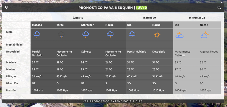 Las altas temperaturas se mantendrán en Neuquén y alrededores durante toda la semana. El martes la máxima será de 34 grados, con cielo nublado y algunas tormentas durante la mañana, mientras que el miércoles el termómetro ascenderá a 35°C.