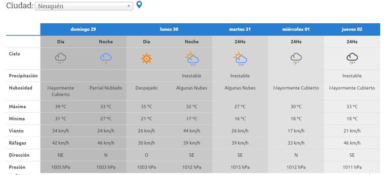 El domingo están pronosticados registros aún más elevados y un cambio en las condiciones generales. Según la AIC la máxima alcanzará los 39 grados durante la tarde en Neuquén en lo que será la jornada más calurosa de la semana.