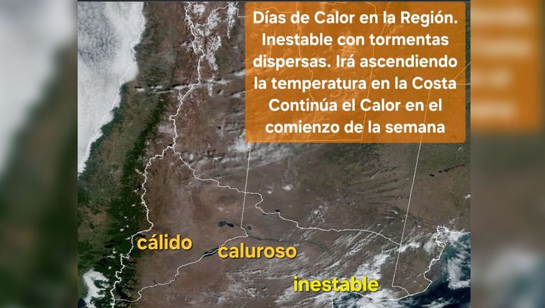La Autoridad Interjurisdiccional de las Cuencas (AIC) también pronosticó una máxima de 37 grados para esta tarde. Para este sábado 4 de enero, como así también para para el Alto Valle y Meseta, se prevé tiempo bueno. Seguimos en presencia de una ola de calor en la región. Además de caluroso estará inestable con tormentas aisladas hacia la noche. Pronosticó que se mantendrán estas condiciones hasta la próxima semana.
