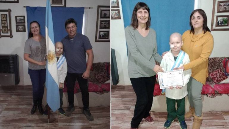 El amor de sus maestros hizo posible al niño el sueño de prometer la bandera más allá del dolor y la enfermedad.