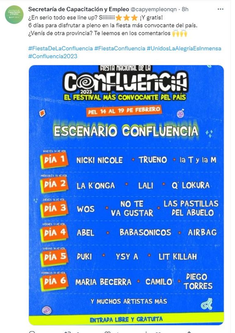 Pre-Confluencia terminada y con veinte bandas y solistas seleccionados que van a ser parte y son de nuestra región”, continuó.