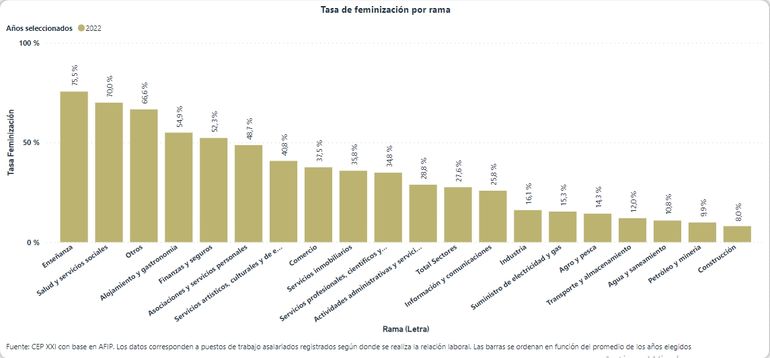 El Centro de Economía Política de Argentina (CEPA) señaló respecto a la conformación de las plantillas de trabajo que la sobrerrepresentación de mujeres en determinados sectores de la economía tiene como contracara la baja participación en otros.