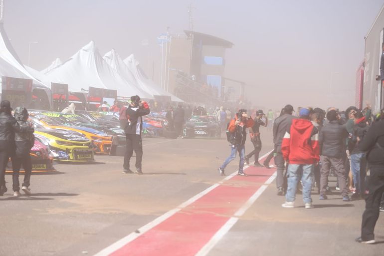 El autódromo de Centenario no es lo que era cuando se inauguró. Ya no está ese césped, falta agua, pero además, las condiciones climáticas, en este domingo, no ayudan.