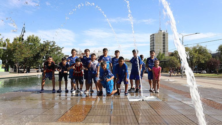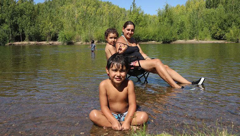 El río Limay es el lugar preferido, pero también algunos chicos optaron por refrescarse en los chorros de agua del Parque Central.