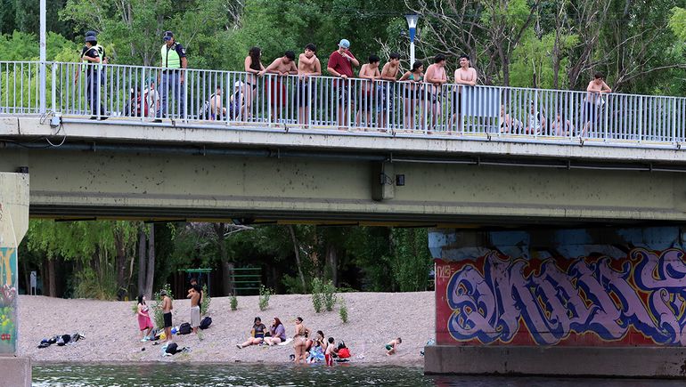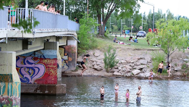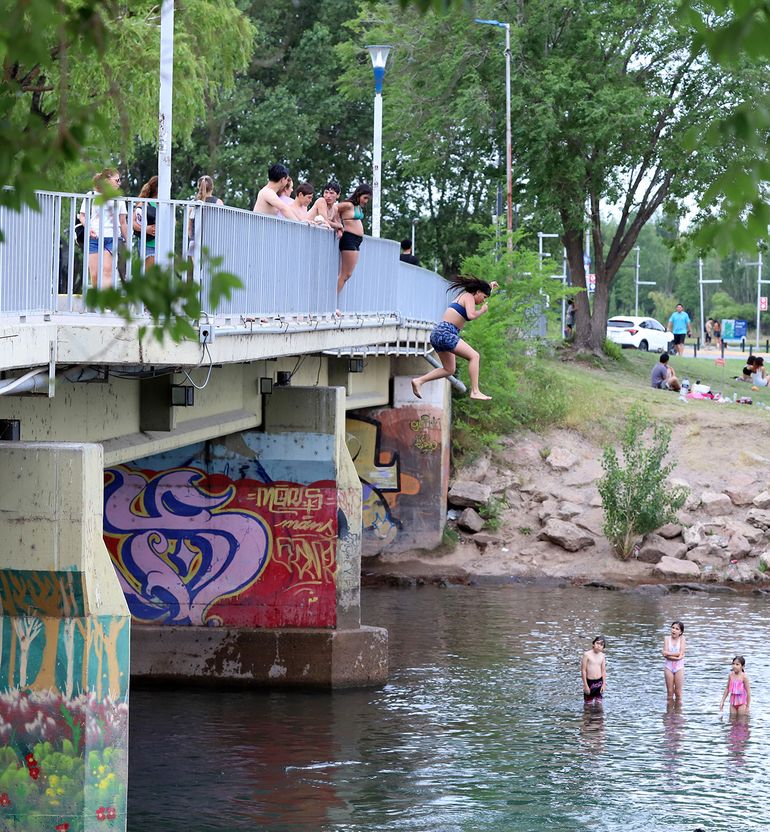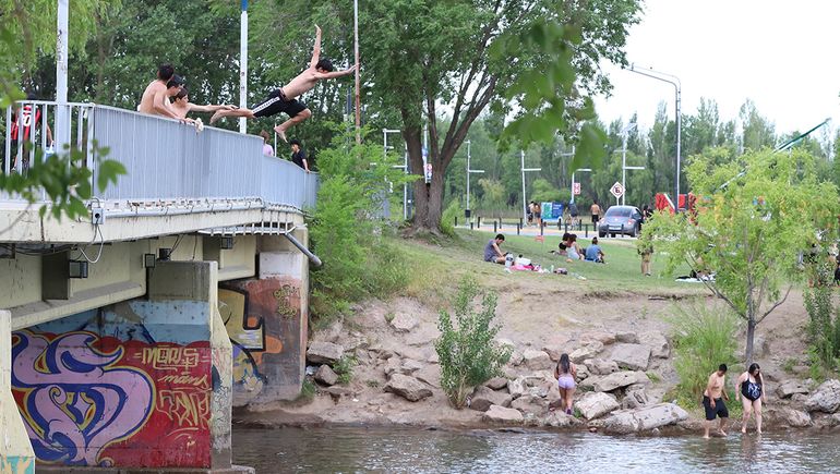 Desde este último fin de semana, que el termómetro registró temperaturas próximas a los 40 grados, volvió la gente a los balnearios y también olvieron los imprudentes al puente sobre el Limay. Se trata de chicos de entre 10 y 15 años que despreocupadamente se arrojan al agua, sin advertir que suelen pasar kayak por debajo proveniente de la zona de los clubes.