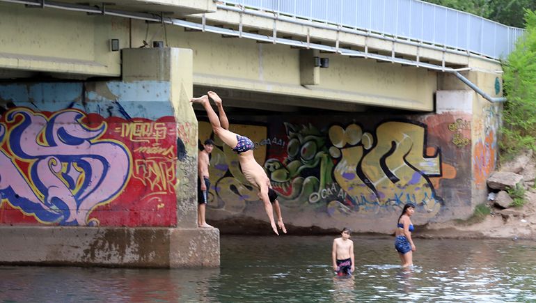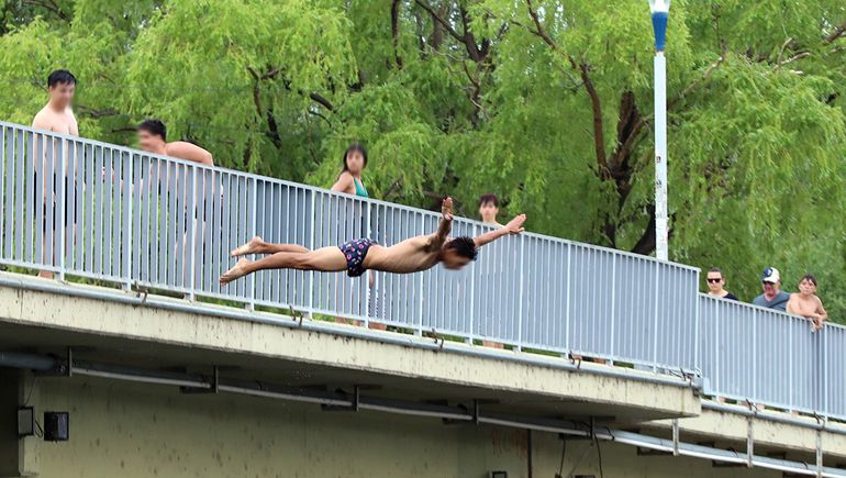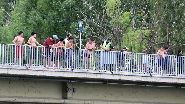 En la tarde de este miércoles, volvió a repetirse la misma historia ante la mirada de adultos que poco hicieron para evitar que se lancen al agua desde esa altura. Incluso se acercó personal policial para tratar de disuadirlos, pero una vez que se retiró los chicos volvieron a las andanzas.
