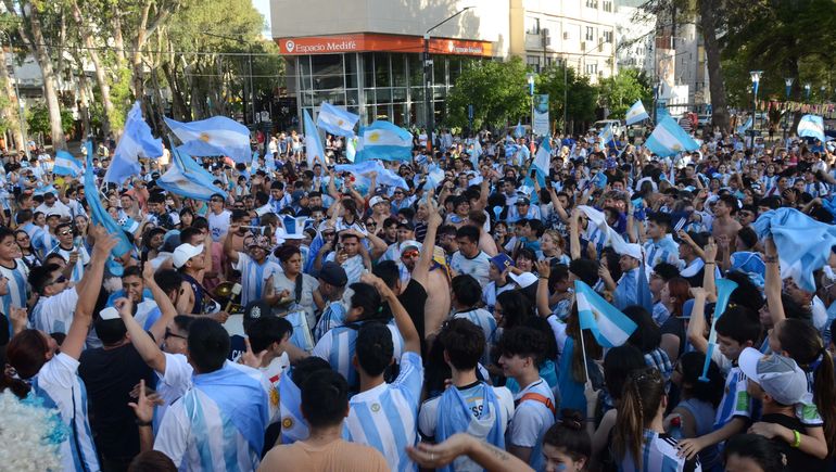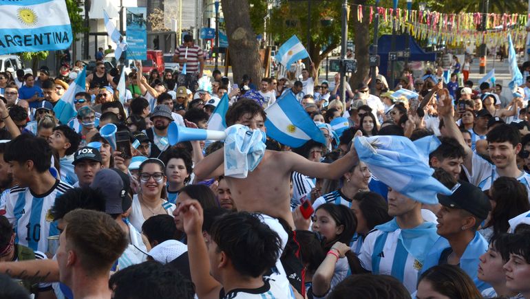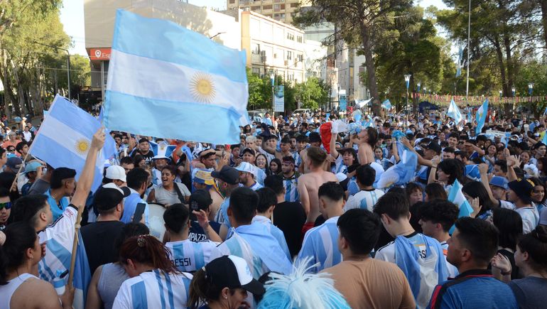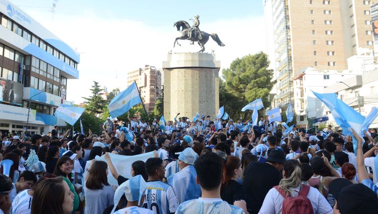 Luego del triunfo y a pesar de los 35°C que se registraron este sábado en la ciudad, como es costumbre, los neuquinos comenzaron a convocarse en el monumento a San Martín y una vez reunidos, festejaron con cantos y mucha alegría la tan esperada victoria de la Selección.