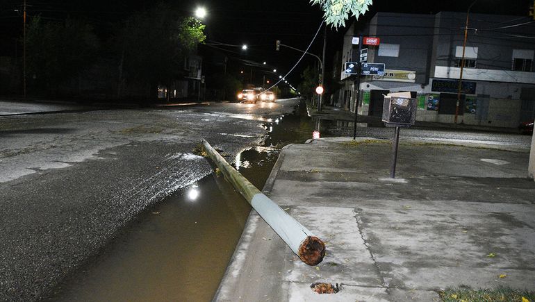 Postes y cables derribados por el fuerte viento fue uno de los inconvenientes que dejó el temporal.