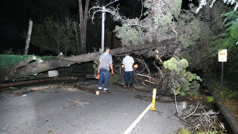 Una gran cantidad de árboles cayeron en distintos puntos de la ciudad. El barrio El Manzanar y la zona de La Falda fueron los sectores donde más se sintió el vendaval.