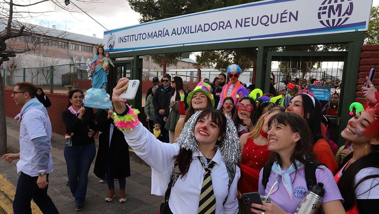 Las calles del centro de Neuquén se llenaron de fe y alegría este lunes durante la tradicional peregrinación del colegio María Auxiliadora (I.M.A.), que reunió a toda su comunidad educativa para celebrar el día de su patrona.