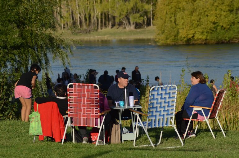 La temperatura rondó los 25°C y el sol estuvo presente durante toda la tarde. Por eso, una buena opción para pasar el feriado de Semana Santa fue acercarse a la costa del río Limay, donde muchas familias y grupos de amigos llegaron con sus reposeras para relajarse y, como siempre, los acompañó el mate y algo rico para compartir.