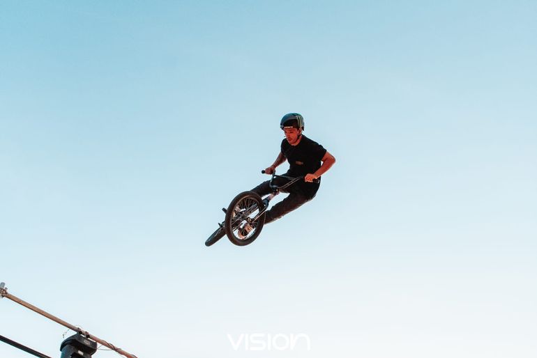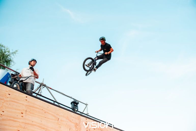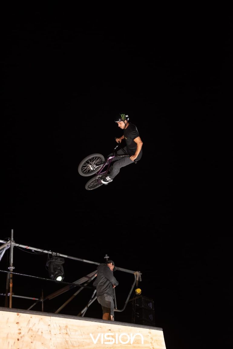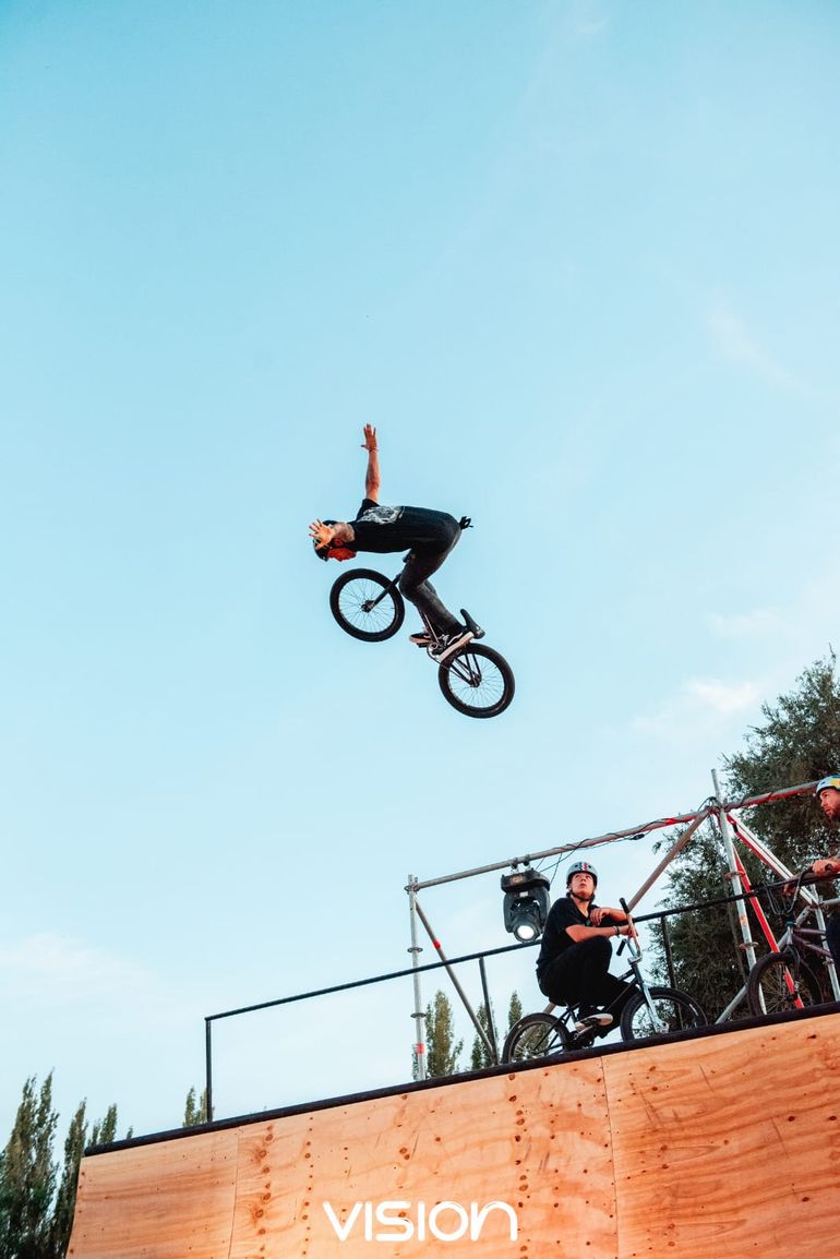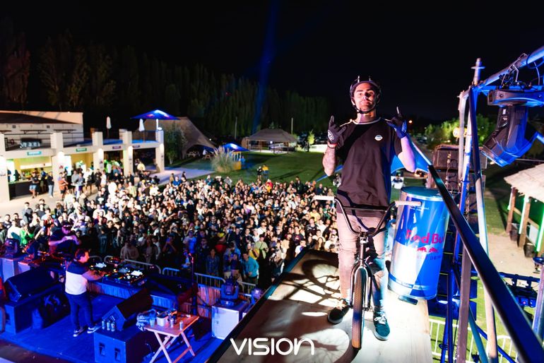En febrero último, ya clasificado para los Juegos Olímpicos, estuvo en el Alto Valle, donde participó de la fiesta electrónica Vision-X, junto a otros freestyler de BMX del país.